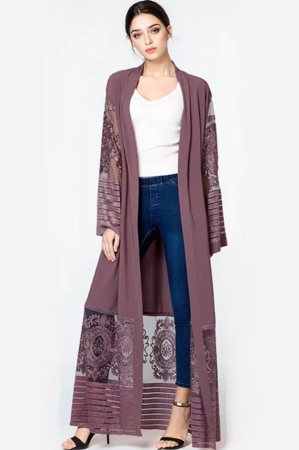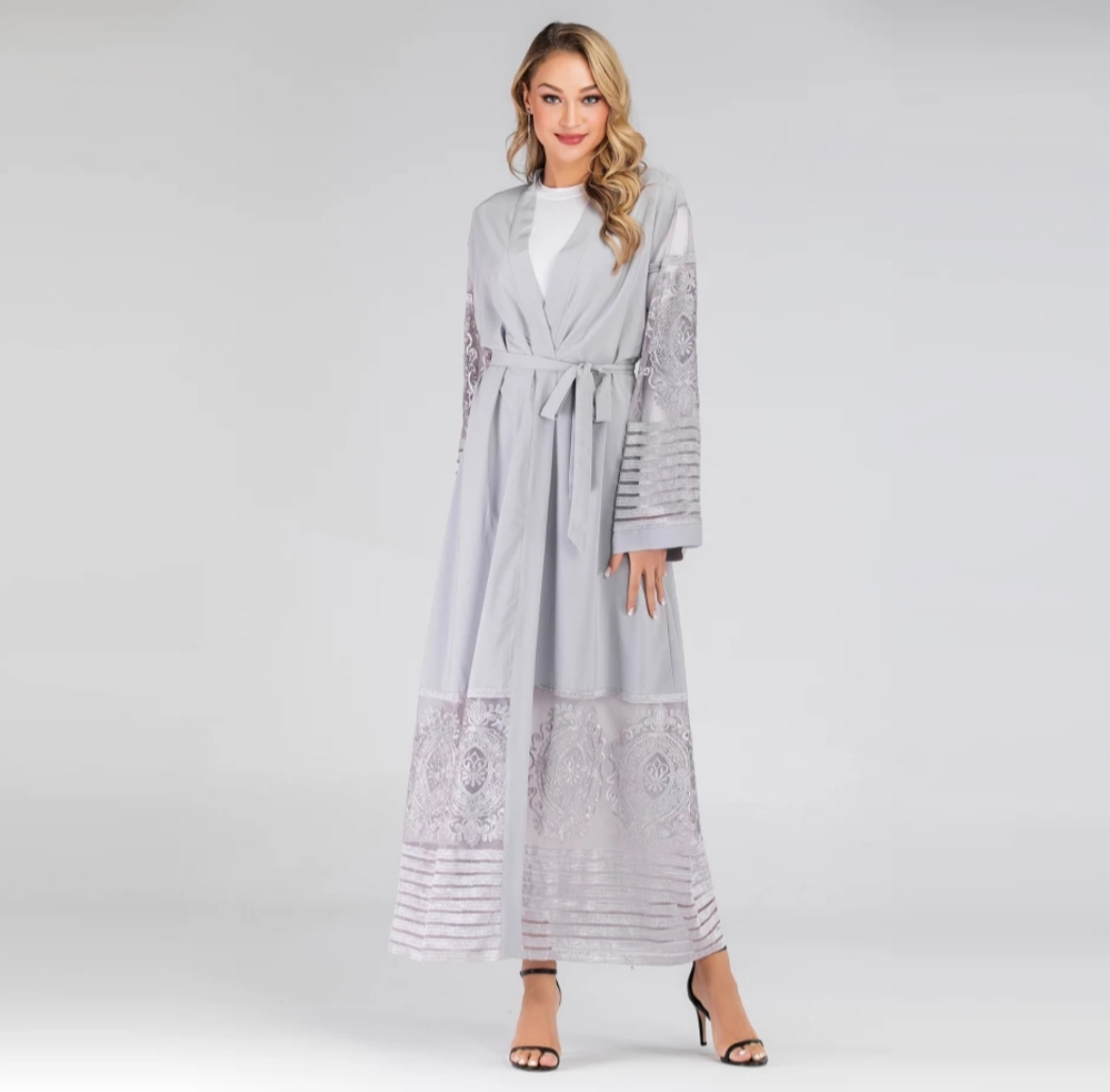 This beautiful abaya comes in 4 colors, black, navy blue, gray and purple.